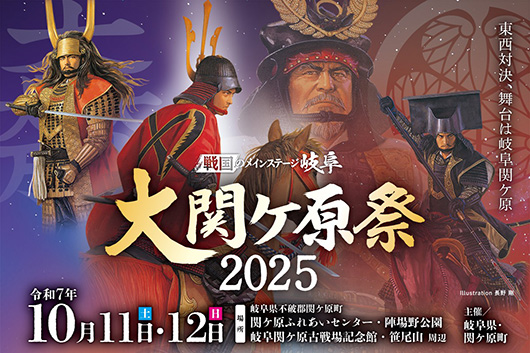 ◆天下分け目の関ケ原 東西人間将棋 巨大な将棋盤を舞台に、当代一流の棋士が東西の大将となり、全国から募集した駒武者を率いて戦う、盤上の「関ケ原合戦」です。さて、今年の勝敗やいかに! ◆東西対決 花いけバトル 天下分け目の地、関ケ原で繰り広げる花いけ大決戦! 全国から集結した花いけバトラーが東軍と西軍に分かれ、即興の花いけ真剣勝負に挑みます。勝敗の行方は会場の皆さんの1票です!奮ってご参加ください。 参加者(審査員)には記念品プレゼント! ◆世界三大古戦場サミット 関ケ原古戦場と、ベルギーのワーテルロー古戦場、アメリカのゲティスバーグ古戦場は、「世界三大古戦場」として、2015年度から交流を続けています。「世界古戦場サミット」開催から10周年の節目に、天下分け目の関ケ原に各古戦場からゲストを招聘し、各国の歴史的転換点となった戦いについて、古戦場の使命や課題をテーマに意見を交換するとともに、歴史的な意義と平和の尊さを発信します。各国の歴史的転換点となった戦いについて、日本の天下分け目の地「関ケ原」でお話を聞ける貴重なチャンスです! ◆関ケ原スペシャルトーク 来年の大河ドラマ「豊臣兄弟!」(NHK)に出演予定の、俳優としてテレビや映画で活躍の松本 怜生さんと、アイドルグループ 乃木坂46のメンバーとして活躍の井上 和さんをゲストに、関ケ原観光大使のクリス・グレン氏らとともに、関ケ原合戦と織田信長をはじめ、岐阜県ゆかりの戦国武将にまつわるトークを展開します。 ◆関ケ原研究大会 パネルディスカッション 小和田哲男氏、桐野作人氏、外岡慎一郎氏によるパネルディスカッション「関ケ原合戦参戦武将の誤算と幸運」を開催します。 ◆れきしクンと行く! 大関ケ原祭 探訪ツアー 歴史ナビゲーターの“れきしクン”こと長谷川ヨシテル氏が、深い歴史知識を軽妙なトークにのせて、「大関ケ原祭2025」と関ケ原古戦場をめぐります。歴史ファンからファミリーまでお楽しみいただけます。 参加者には、記念品(関ケ原グッズ)をプレゼント! ◆歴史カードゲーム合戦 歴史カードゲーム「Hi!story(ハイストリー)」関ヶ原の戦い「情義の西軍vs歴戦の東軍」 の体験会を開催します。参加無料で限定キラカードがもらえる! ◆戦国茶席 徳川家康をはじめ、関ケ原参戦武将たちも好んだ茶の湯を、岐阜県産の銘茶、銘菓とともにお楽しみいただきます。裏千家の協力のもと、野点席と立礼でのお点前・講座も開催します。 ◆古式日本刀鍛錬 真っ赤になった玉鋼に大槌を打つ、日本刀鍛錬の一番の見せ場「折り返し鍛錬」。火花が飛び散る迫力の刀剣づくりを目の前で実演します。大槌を打つ鍛冶体験や、小柄への刻銘体験もできます。(要実費参加費) ◆関ケ原戦国ライブ ◆関ケ原合戦絵巻2025 ---------------------------------------------- ※詳しくは、ホームページでご確認ください。 https://daisekigaharasai.pref.gifu.lg.jp/ ---------------------------------------------- |