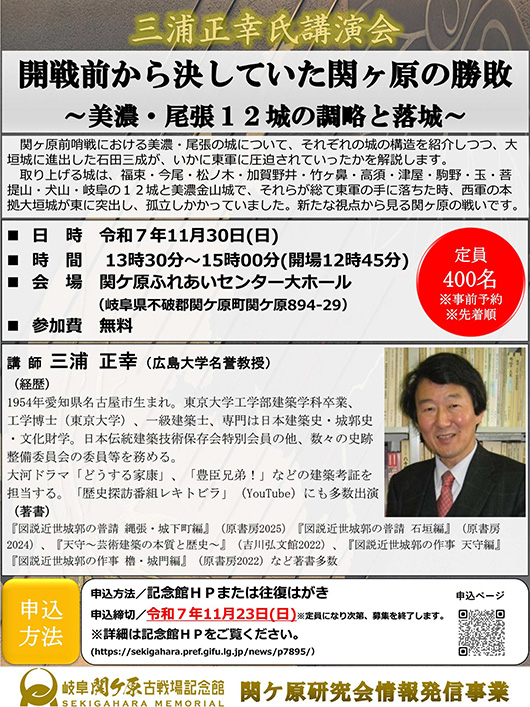三浦正幸氏講演会「開戦前に決していた関ヶ原の勝敗〜美濃・尾張12城の調略と落城〜」 | |