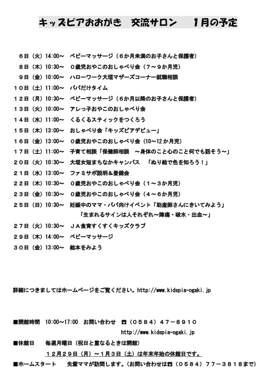 | 開催場所 | キッズピアおおがき子育て支援センター |